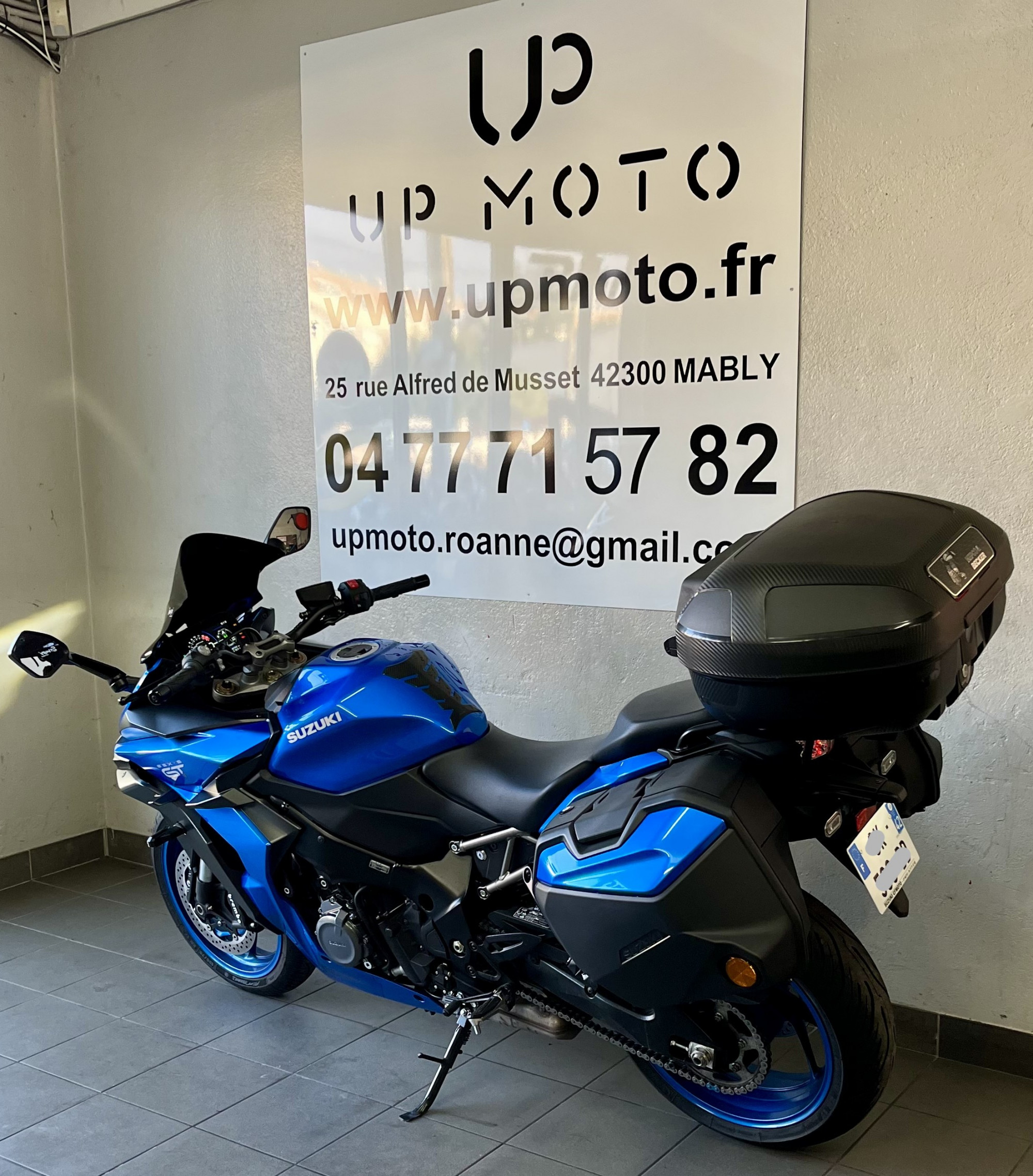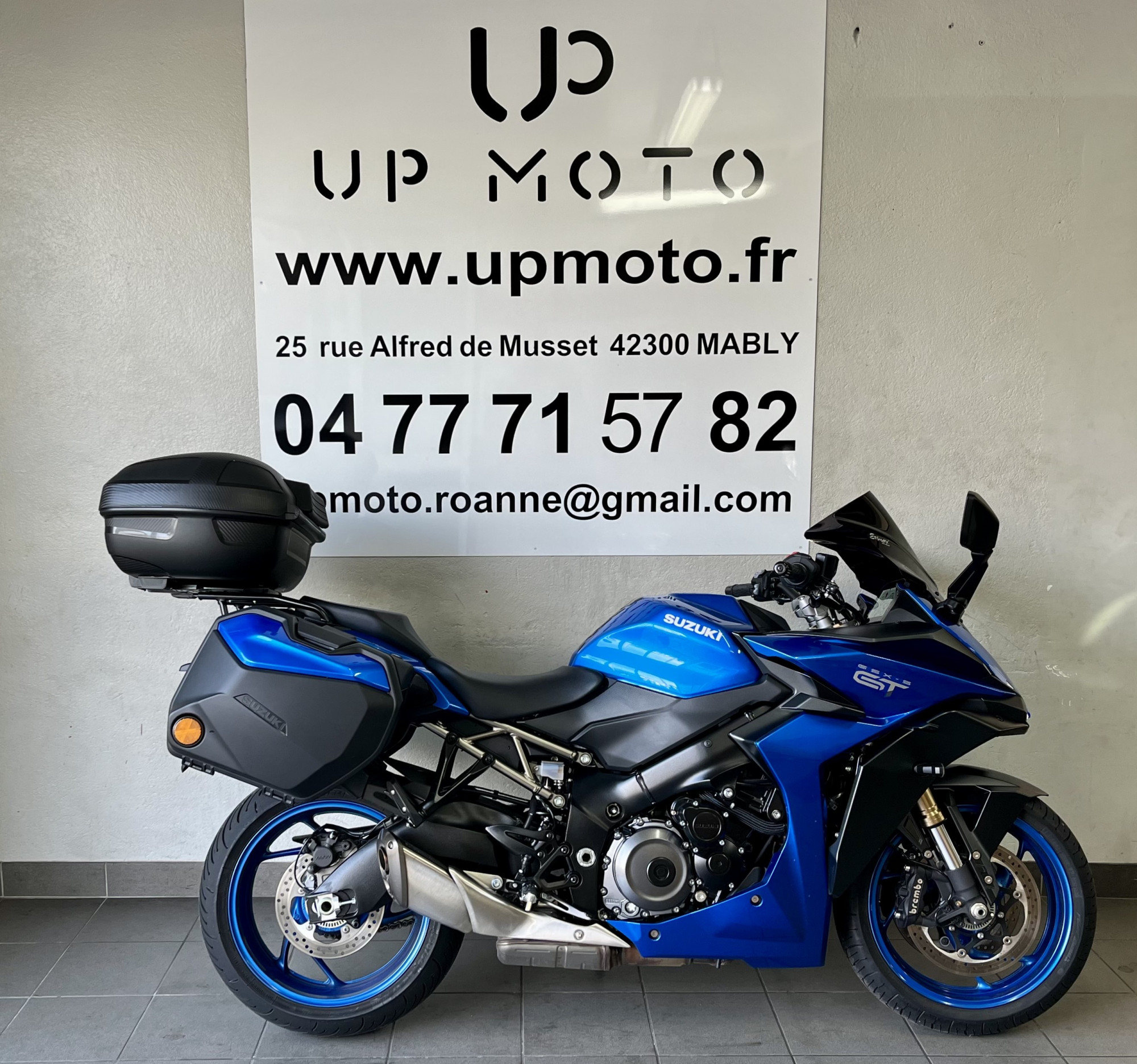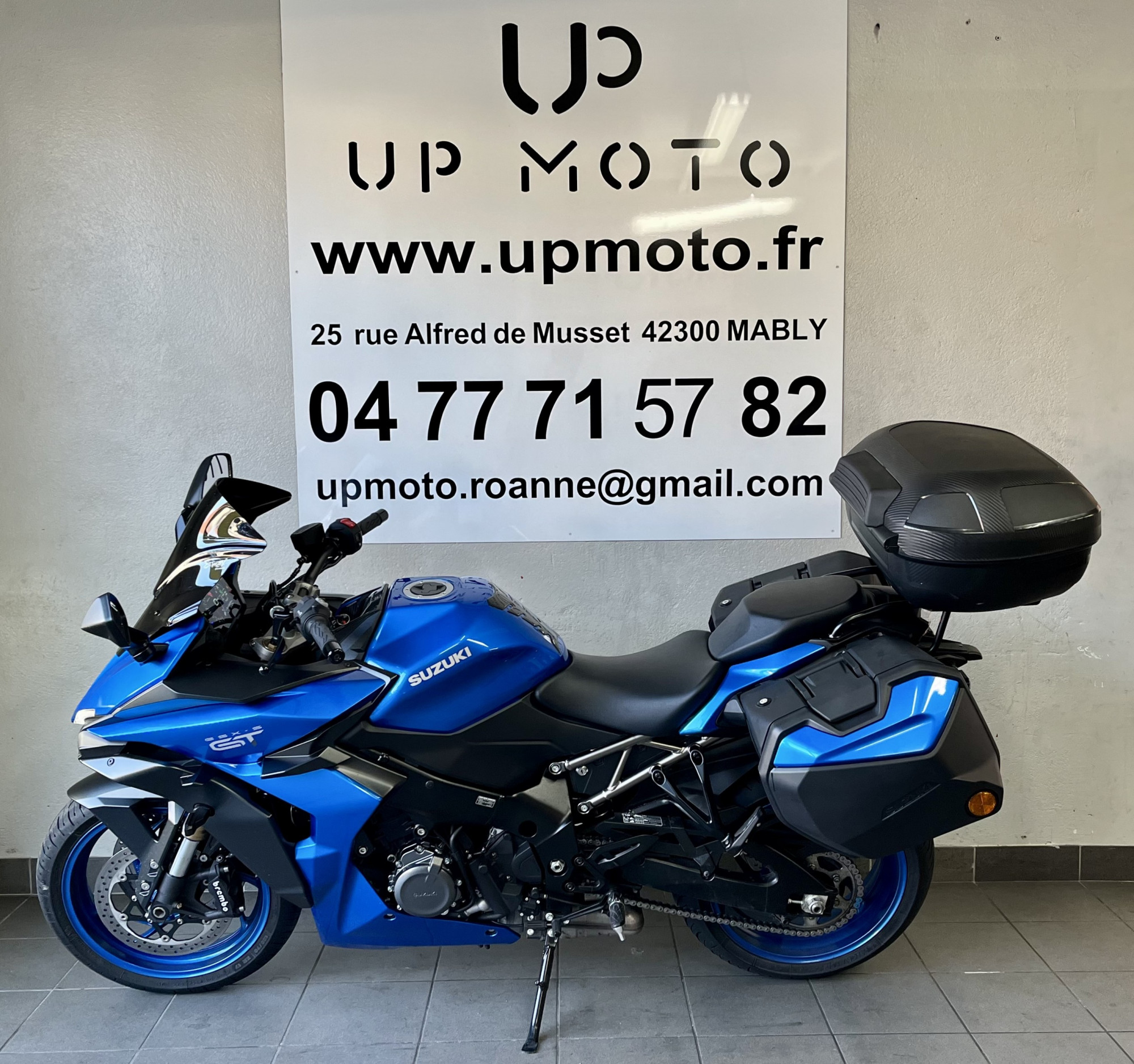 UPMOTO, votre concession SUZUKI à Roanne dans la Loire vous propose cette magnifique Suzuki GSX S 1000 GT en colorie Metallic Triton Blue ( YSF ) de 2022 avec 7757 kilomètres.