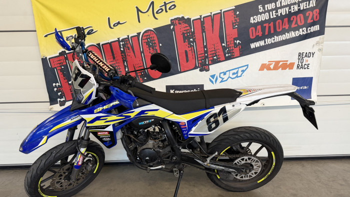 SHERCO 50 SM Factory 2021, 13 959 kms en bon état général. Dernière révision effectuée par nos soins le 21/06/2025 à 13804kms. Consommables ok, rien à prévoir.